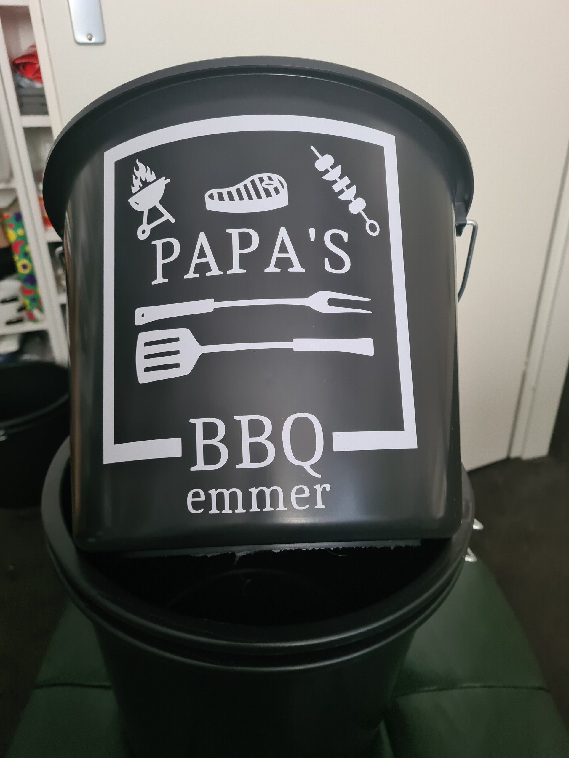 Klusemmer met een leuke tekst “ papa's BBQ emmer "Eventueel kun je de emmer vullen met leuke cadeaus. Leuk om te geven met verjaardag, feestdagen of zomaar
