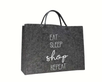 Geweldig leuke vilten tas / shopper met een super leuke tekst, speciaal voor alle shopoholics!