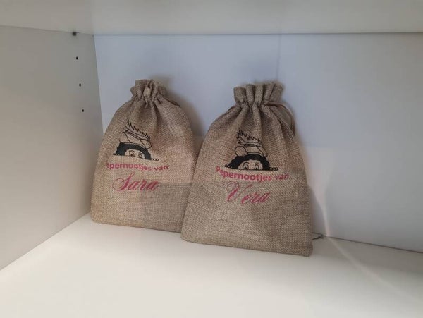 Leuk jute zakje met je eigen naam erop.